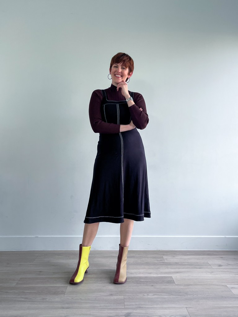 We completely simply discovered my first day of the semester outfit! I used to be not sure if a turtleneck would work underneath this sleeveless gown and am so completely satisfied it does. This, plus the burgundy, makes for an ideal darkish academia impressed outfits. In chillier temps I’d add brown tights!