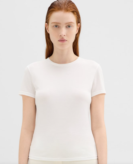 In these weeks of unpredictable climate, layering is vital. Don’t fear, I gained’t discuss my thermal vest once more (you don’t need a glamour overload). As an alternative I’m speaking a few key wardrobe staple – the crew neck white cotton t-shirt.