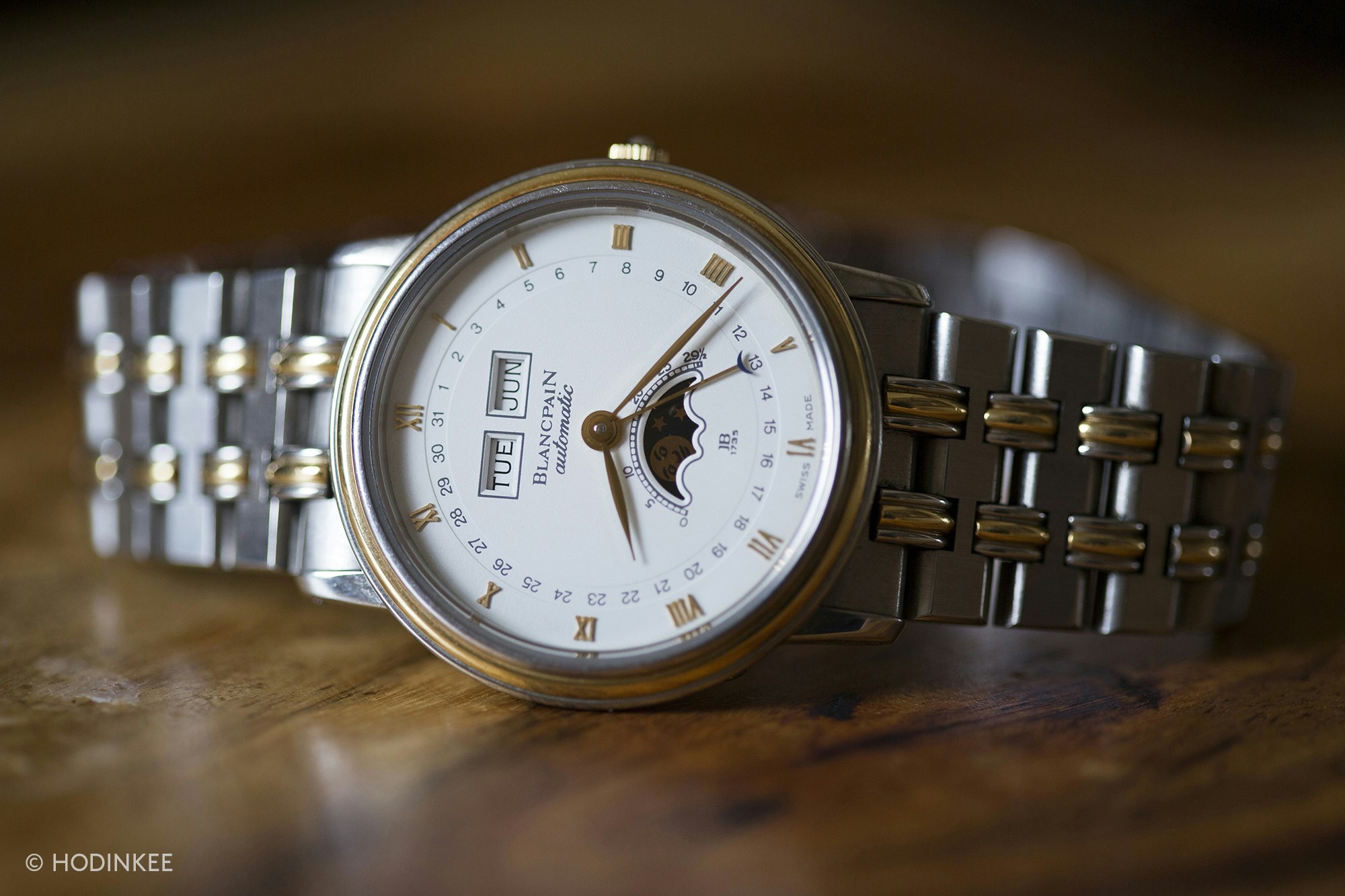 Blancpain launched the whole calendar moonphase ref. 6595 (34mm) in 1983. Alongside, it additionally launched the 26mm ref. 6395, which set a file because the smallest full calendar moonphase. Small, skinny, and with that Mona Lisa smile moonphase at 6 o’clock, it made a press release about what the brand new Blancpain was right here to do: Sophisticated, conventional watchmaking – and it wasn’t going to shout about it both. The kind of high-end watchmaking that quartz simply couldn’t match. For perspective, the ref. 6595 was launched the identical 12 months Swatch hit the market.