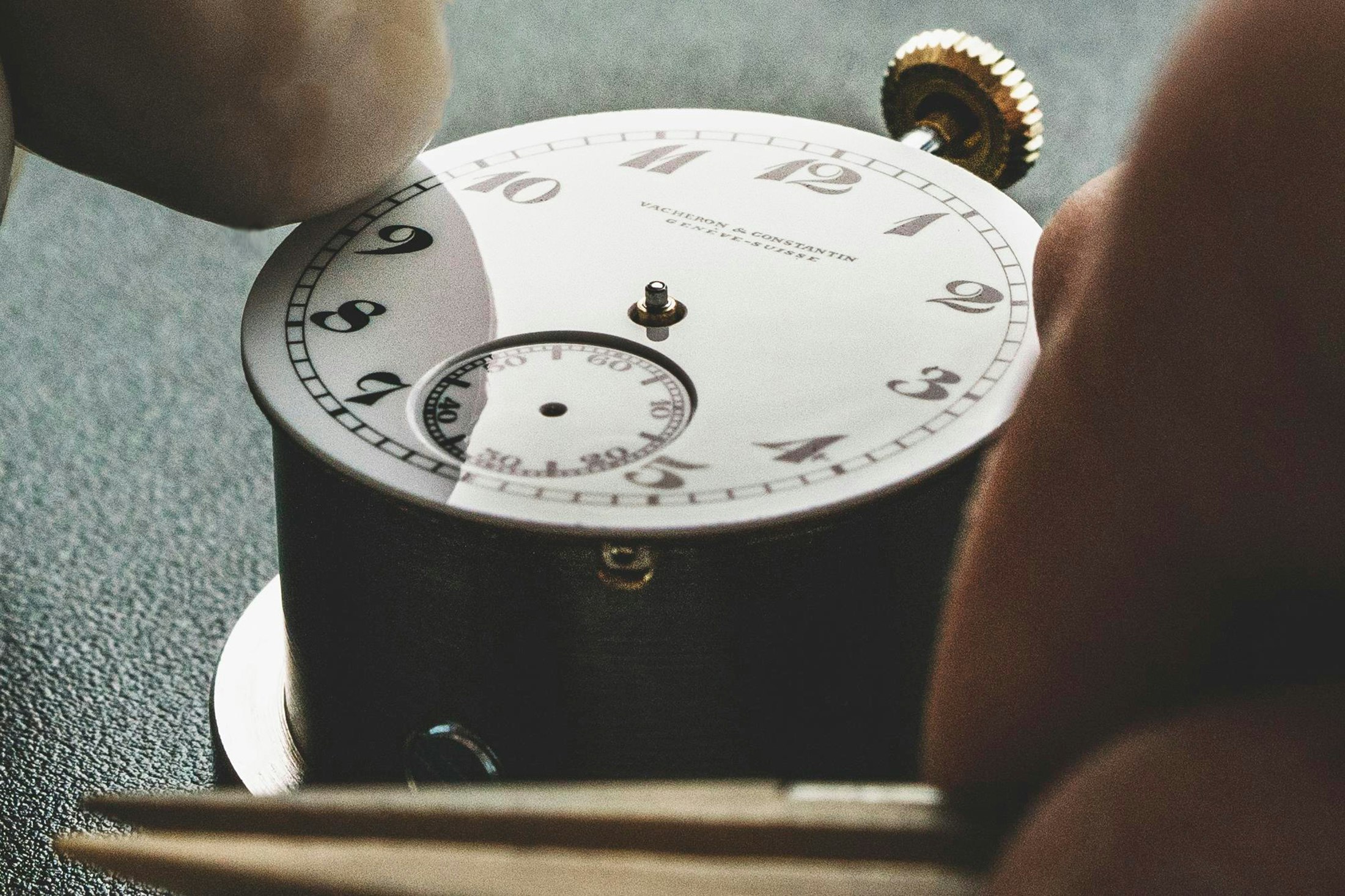 One factor that hasn’t modified for the reason that Twenties: Watch arms are nonetheless friction-fit onto their posts. The hour and minute arms are set by hand in order that they’re precisely parallel, with simply sufficient clearance between them to run with out fouling one another or the small seconds hand (one of many first issues I realized after I began engaged on classic pocket watches was that if a watch stopped for no purpose, the very first thing to verify was if the arms had loosened on their posts and began rubbing towards one another or the dial. Generally on older watches, you’ll be able to see arc-shaped scratches on the dial attributable to loose-fitting or incorrectly set arms). I really feel good for the arms on the distinctive piece – that they had been sitting in a drawer by a despair, two World Wars, the daybreak of manned area flight, the quartz disaster, the digital revolution, and the start of the World Extensive Internet earlier than lastly fulfilling their future, however they obtained there in the long run.