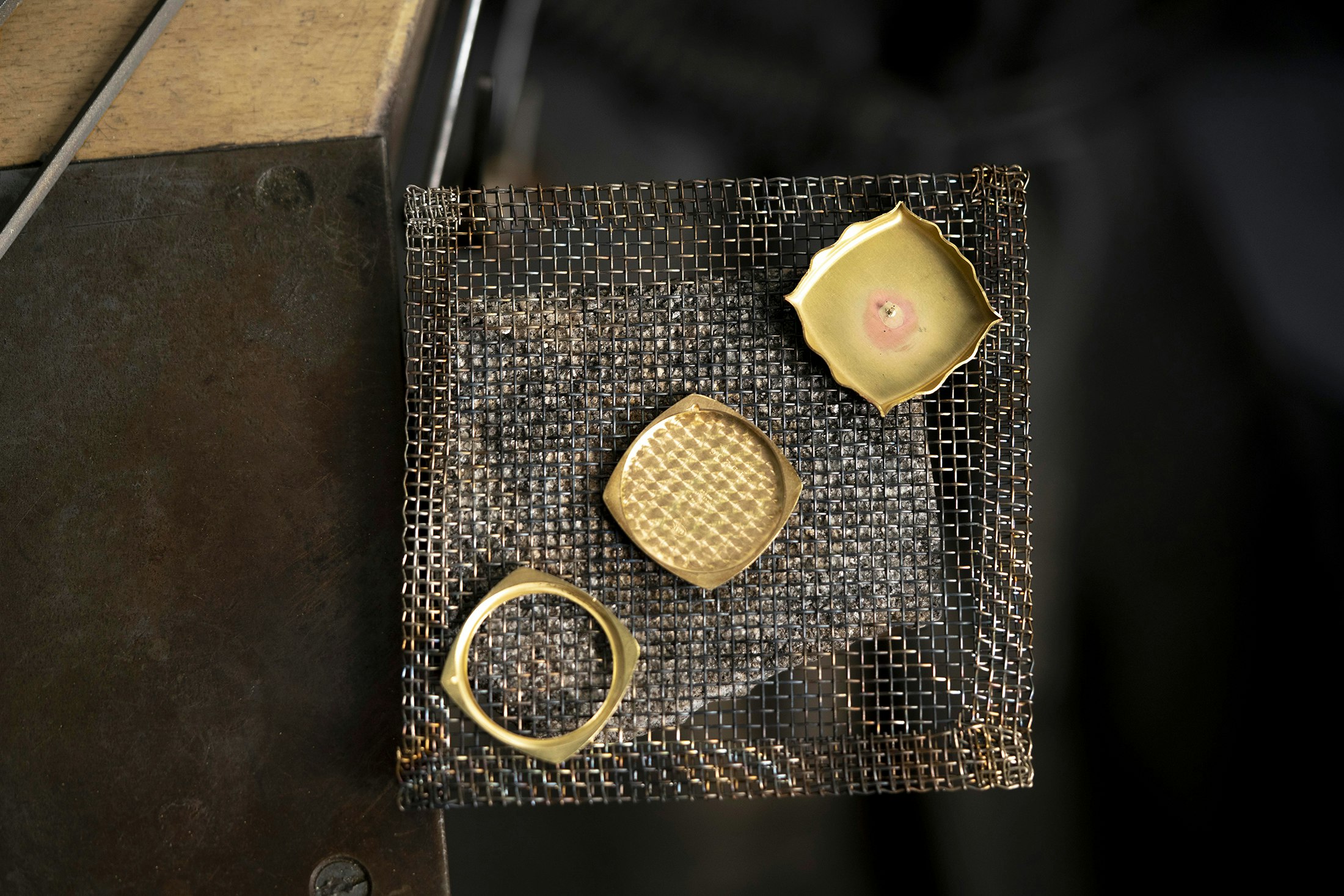 Shaping the bezel with a jeweler’s hammer.