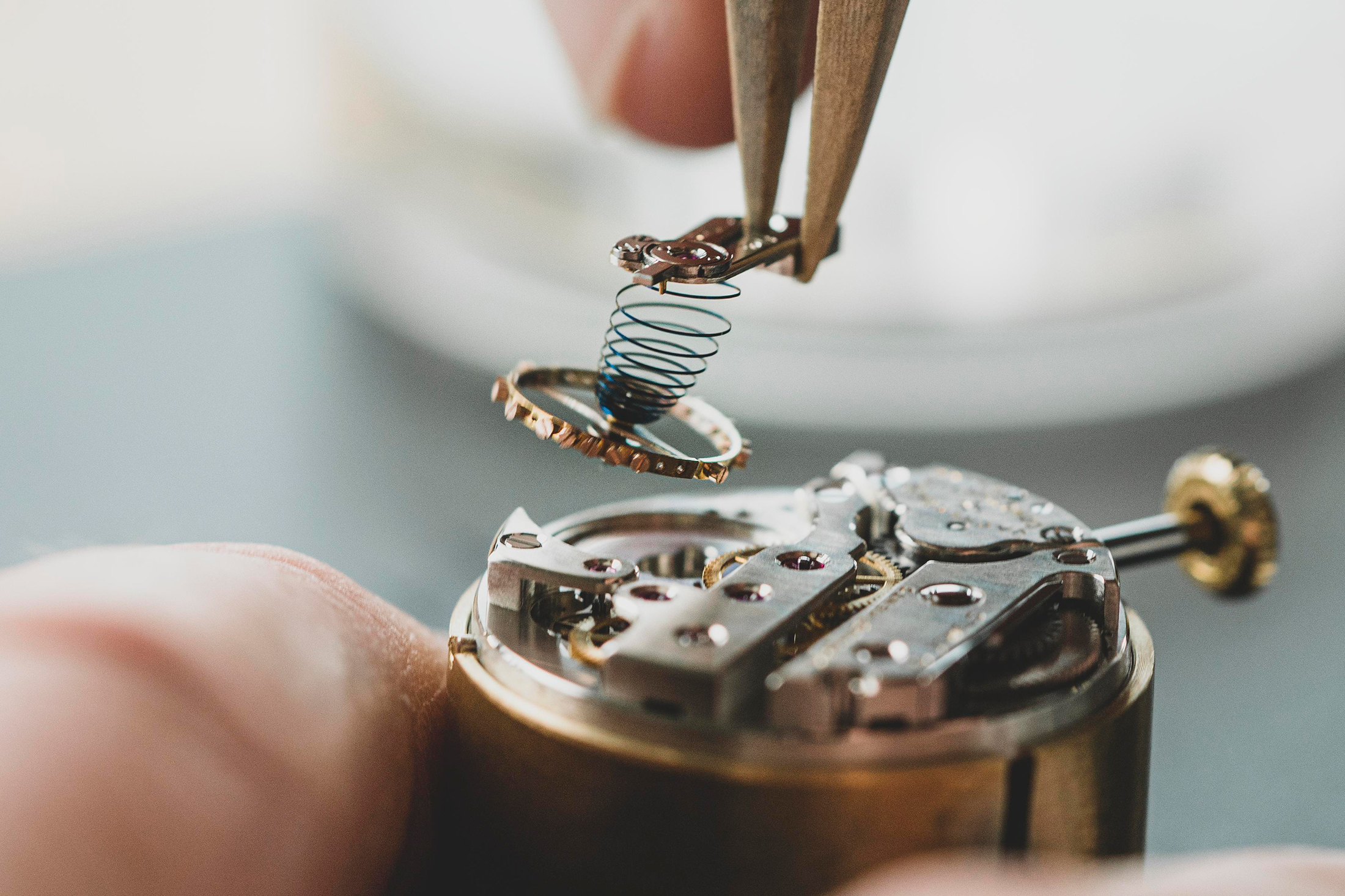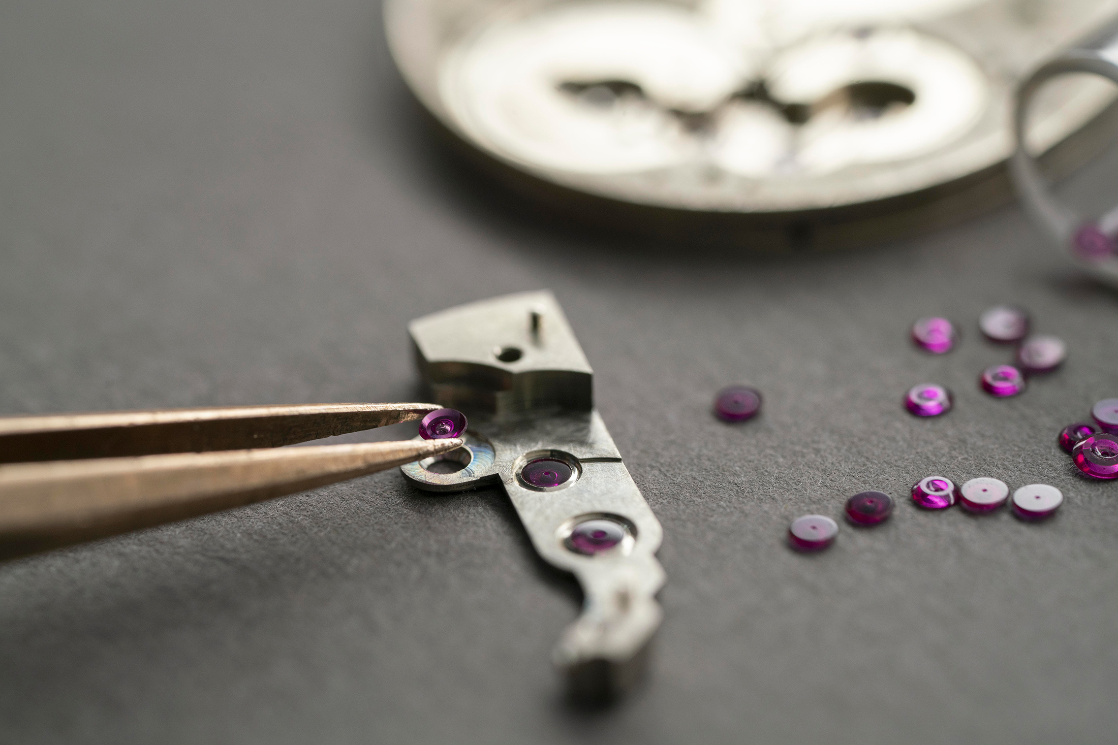 For the distinctive piece, the jewels had been first pressed into place, utilizing a tool known as a staking device. The setting of every jewel is then accomplished by elevating the metallic round it to safe it in place – a course of much like methods used to set gem stones in jewellery. The holes for jewels within the mainplate and bridges had been drilled utilizing an 18th century upright drilling device.